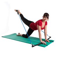 Kneel on your hands and knees, Therastick positioned under your hands. Keep spine neutral. Engage the core then extend one leg out behind so it is parallel to the floor.